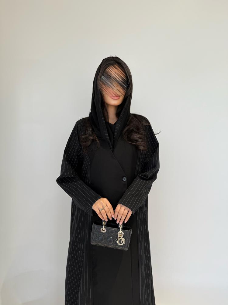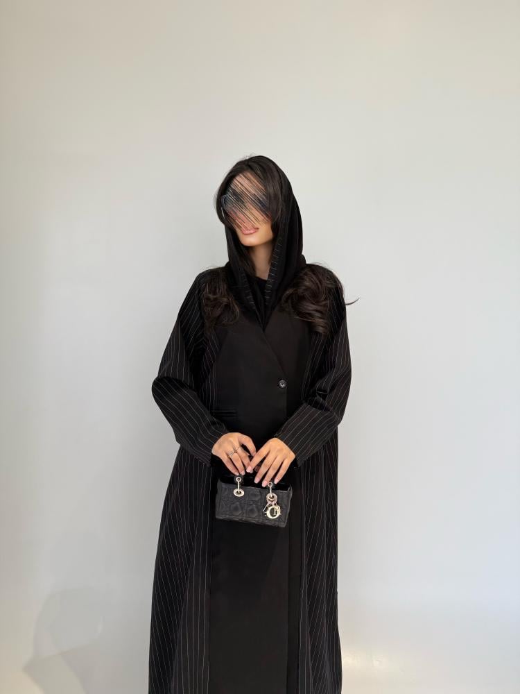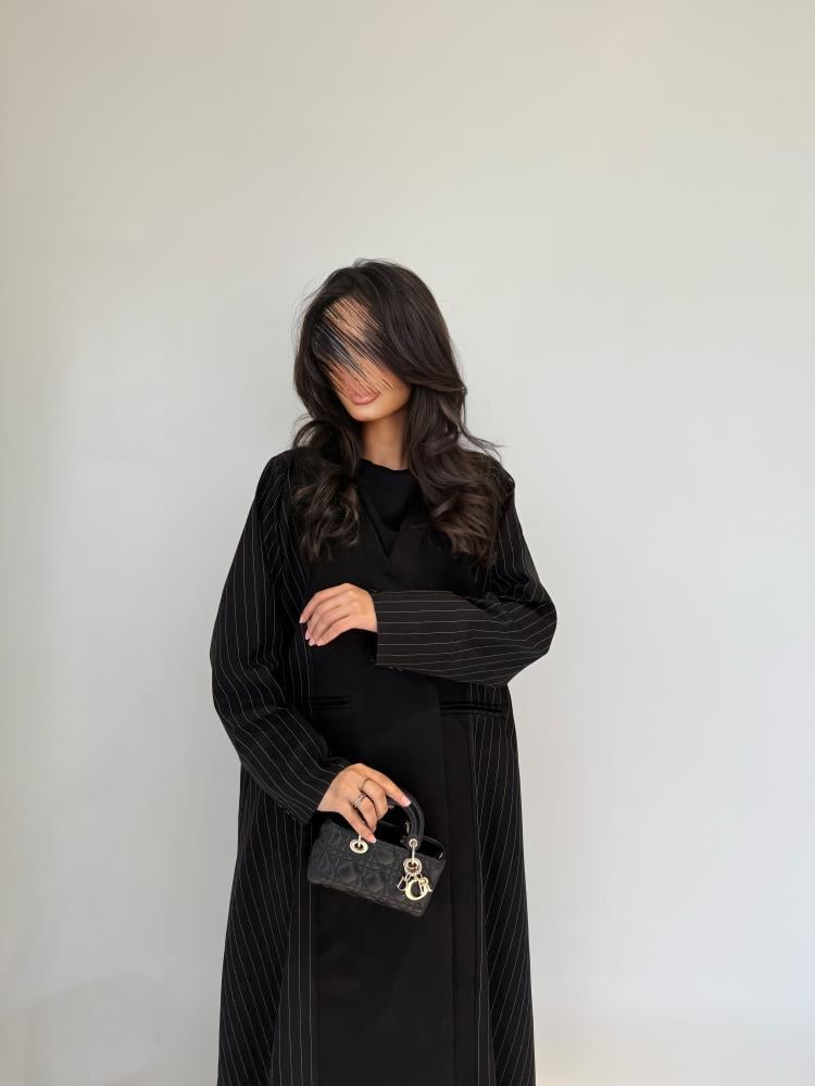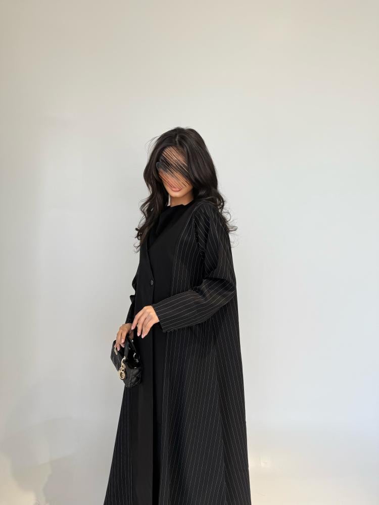 عبايه كتان مخطط جوانب .